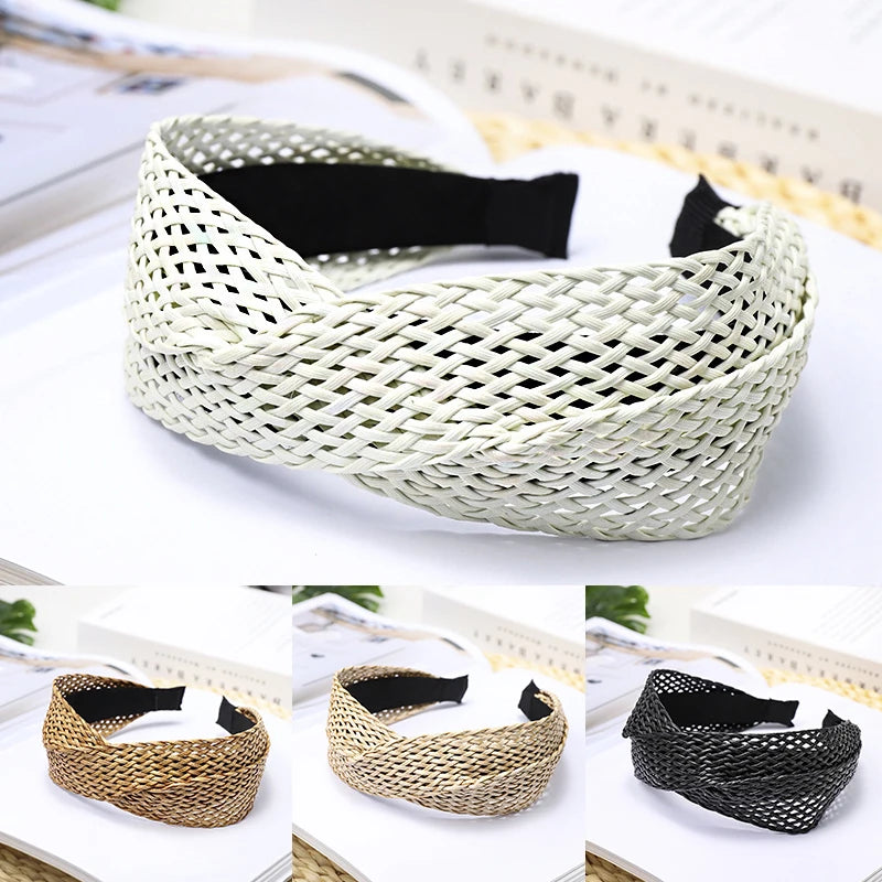 Bohemian Women Cross Knotted Straw Weaving Headband