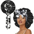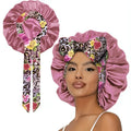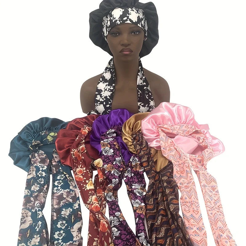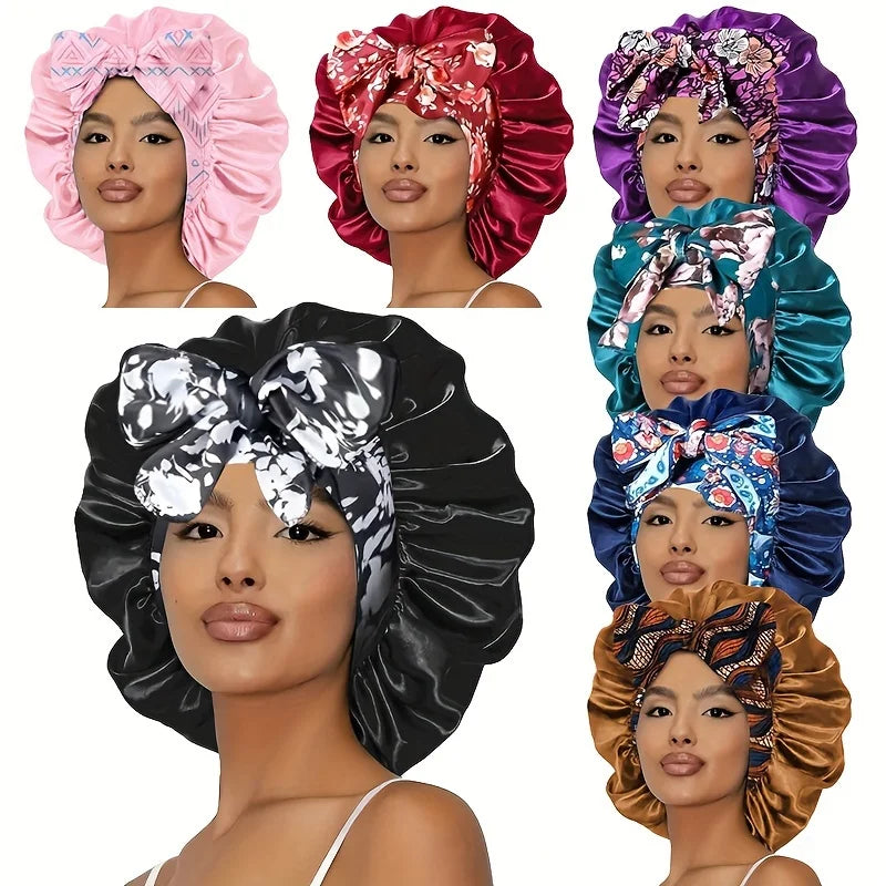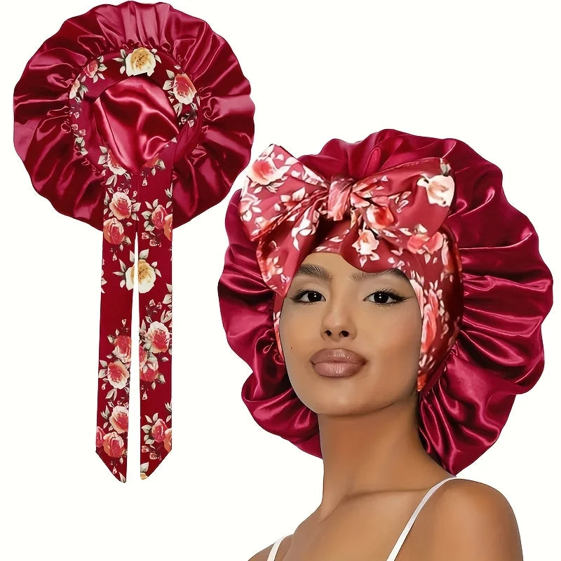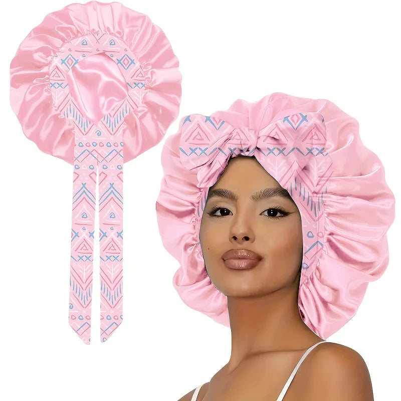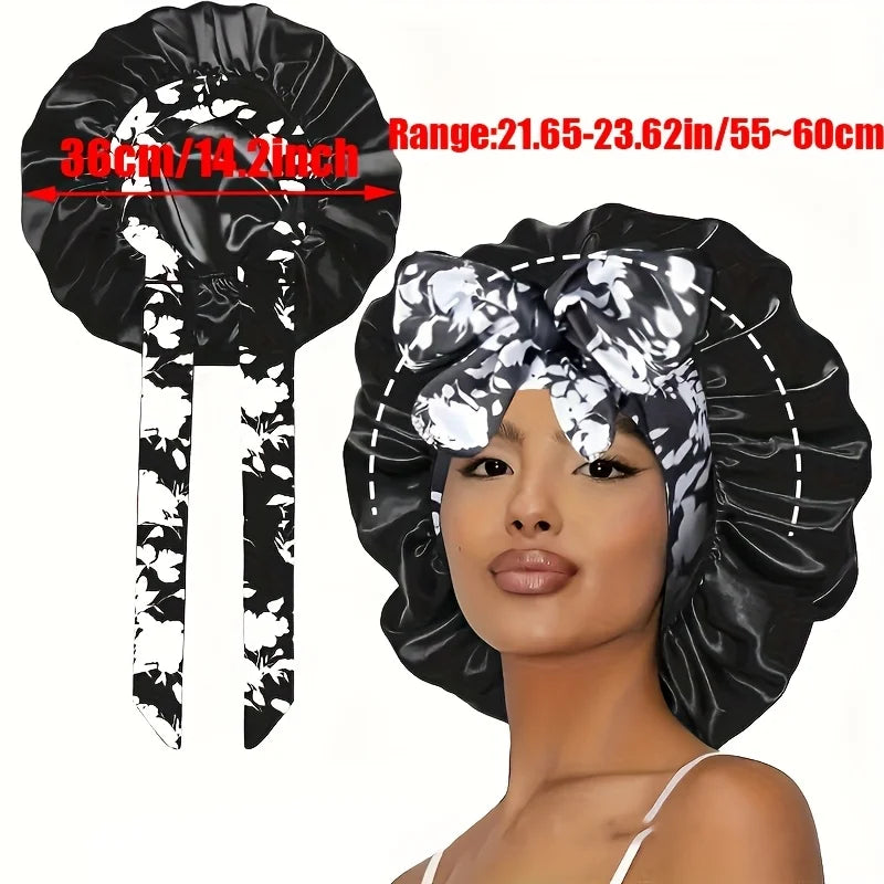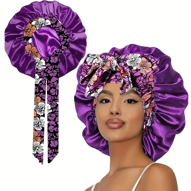 The bonnet is made of high-quality polyester satin, designed to be soft, breathable, and gentle on your hair.